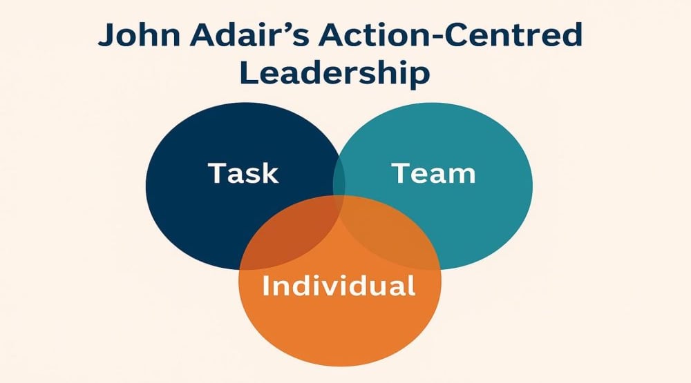 Adair’s great contribution was not complexity, but clarity. Leadership, he argued, is the constant balancing of three responsibilities: